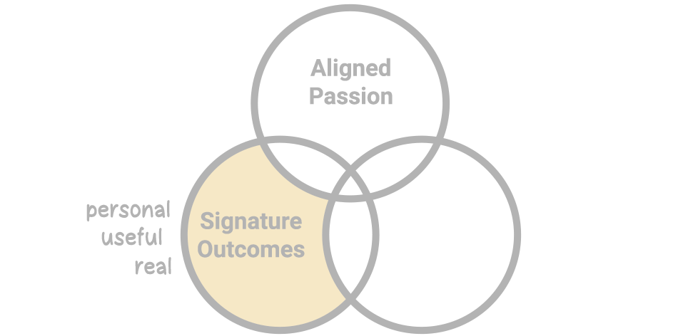 When you turn your insights into something teachable and repeatable, you create Signature Outcomes—results that feel personal, useful, and real. (Like turning your scattered notes into one clear decision-making tool.)